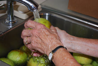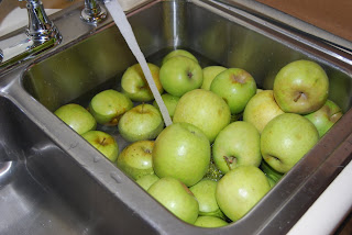 1) Wash the apples. We used Mutsu apples (suggested to us by the Apple Barn worker). They were really juicy and tasted great!