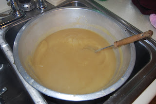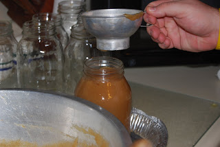 6) We placed the applesauce in our heated jars following canning instructions provided by Granny.